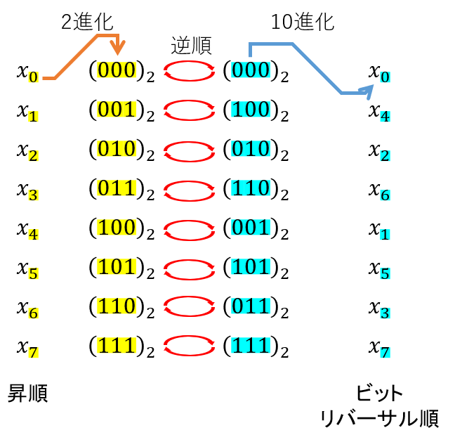 図6:ビットリバーサル順の求め方